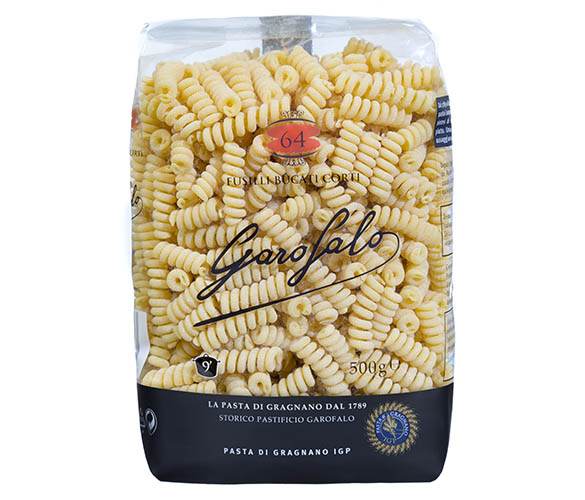 Their shape is a tribute to tradition that has been renewed thanks to the best technologies, Garofalo Fusilli Bucati Corti are curled spirals of bronze-drawn pasta capable of enveloping condiments.